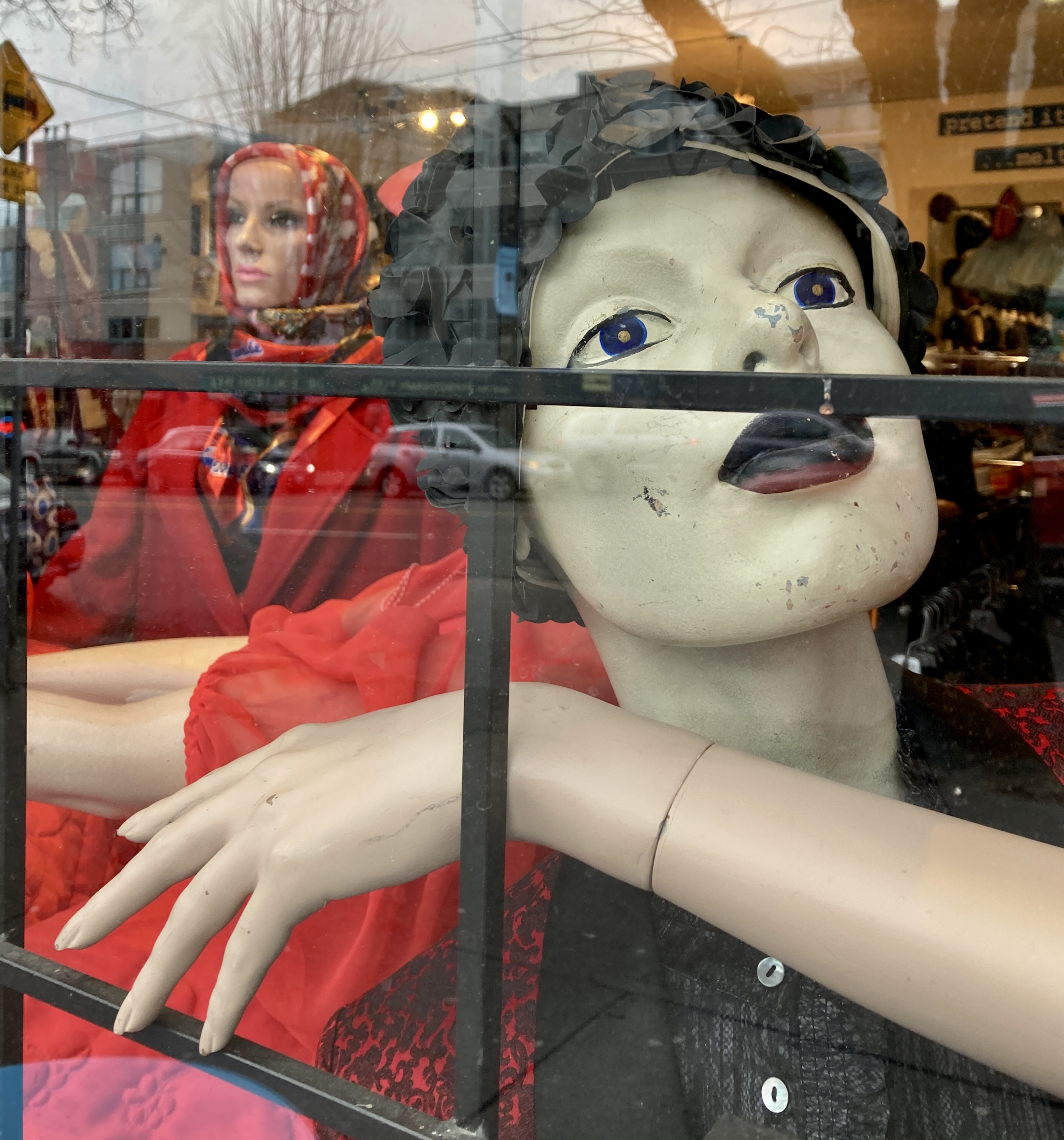 Some pedestrians are just stomping their way through the tunnelling disruptions to foot traffic, but many of us are downright fascinated. We stop, like this woman…