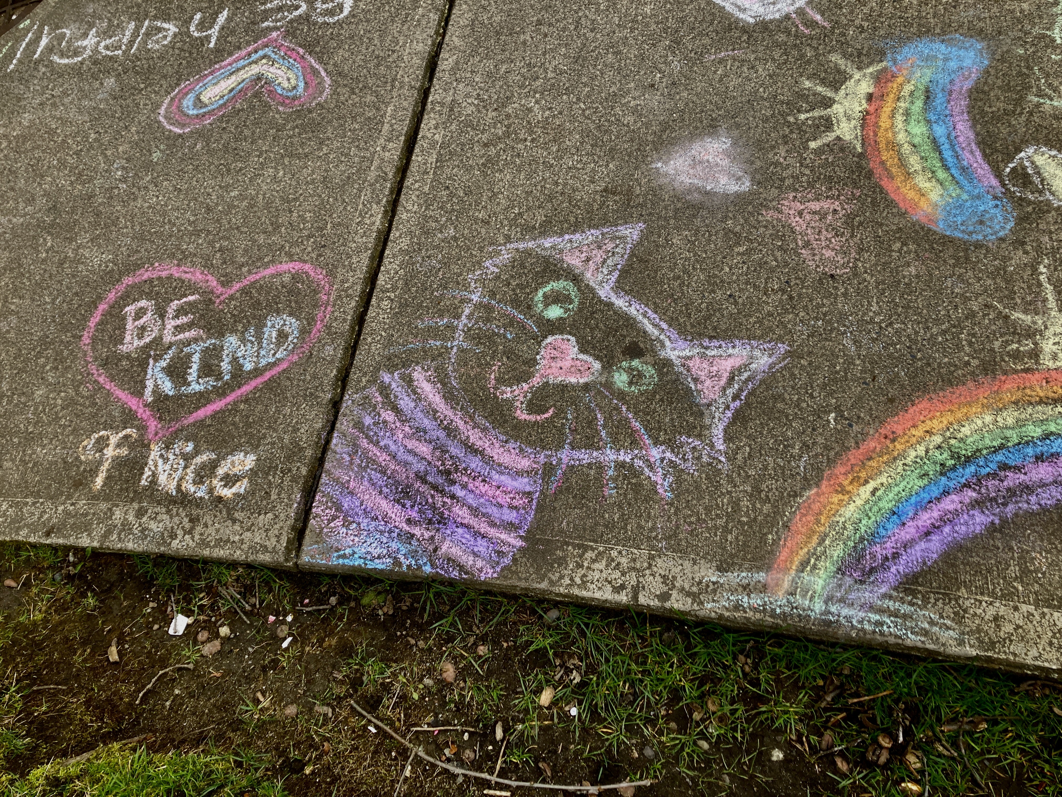 And then, after adding some books to the East 10th community book exchange, I check the display on the adjacent tree, which always sets a seasonal theme, supplies art materials, and asks for comments.