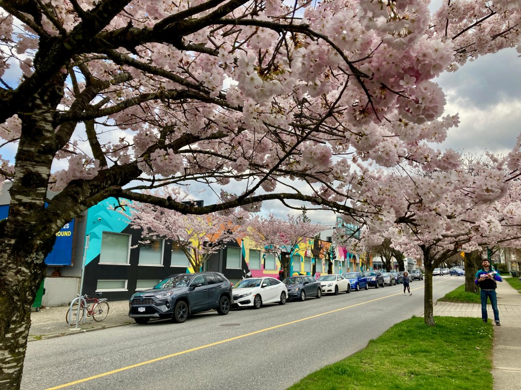 To the north, the cherry trees that line East 7th Avenue (Kanzan cultivar, the Blossom Map tells me) …
