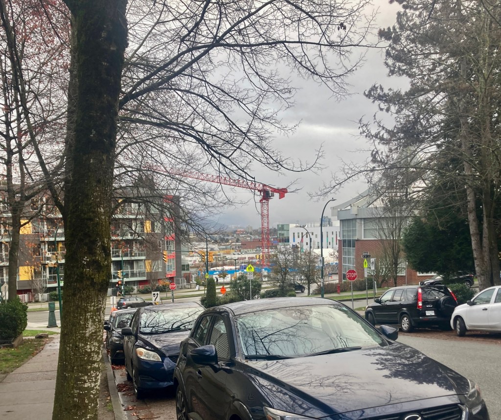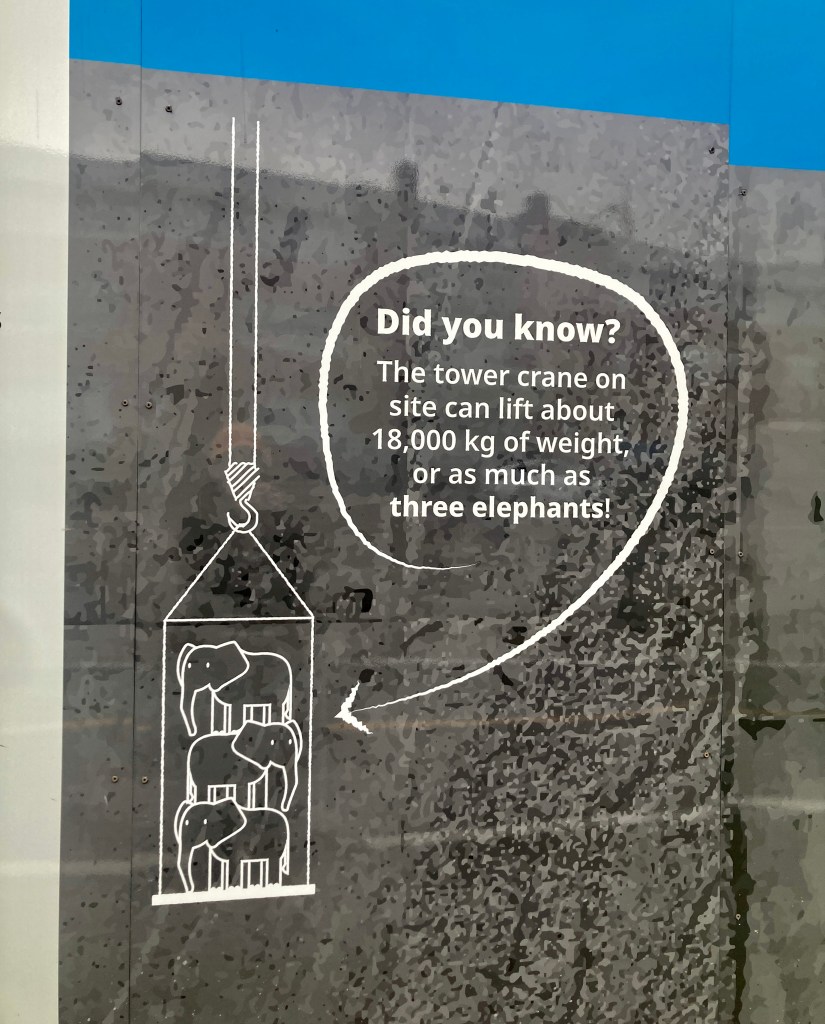 And, in between, the work-in-progress GNW Emily Carr transit station, with its hoardings and bouncy signage to explain what’s happening, along with viewing slots so you can see for yourself.