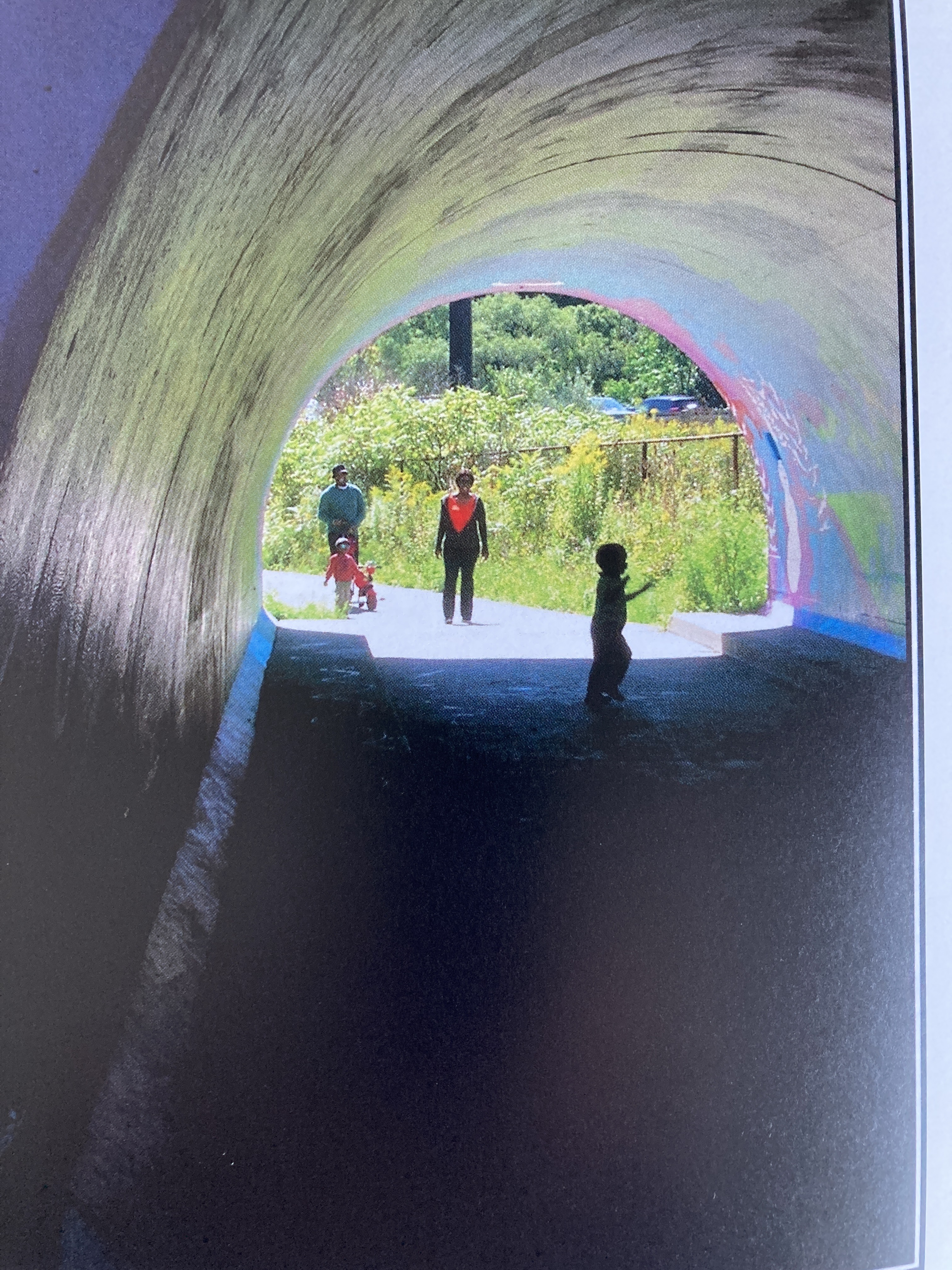 Look Sideways, East: the eco-conscious alley behind MEC, with watercourse and plantings to attract insects and bees.