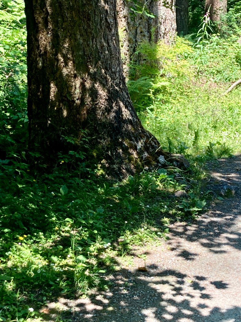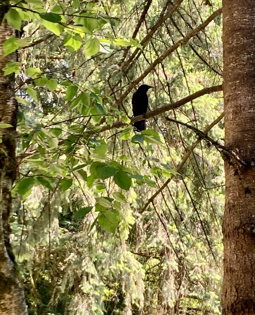 The one I noticed and showed you in April, “a thunderbird, perhaps?” I said. A carving someone had wedged in among some branches, making it impossible for my photo to capture the entire piece.