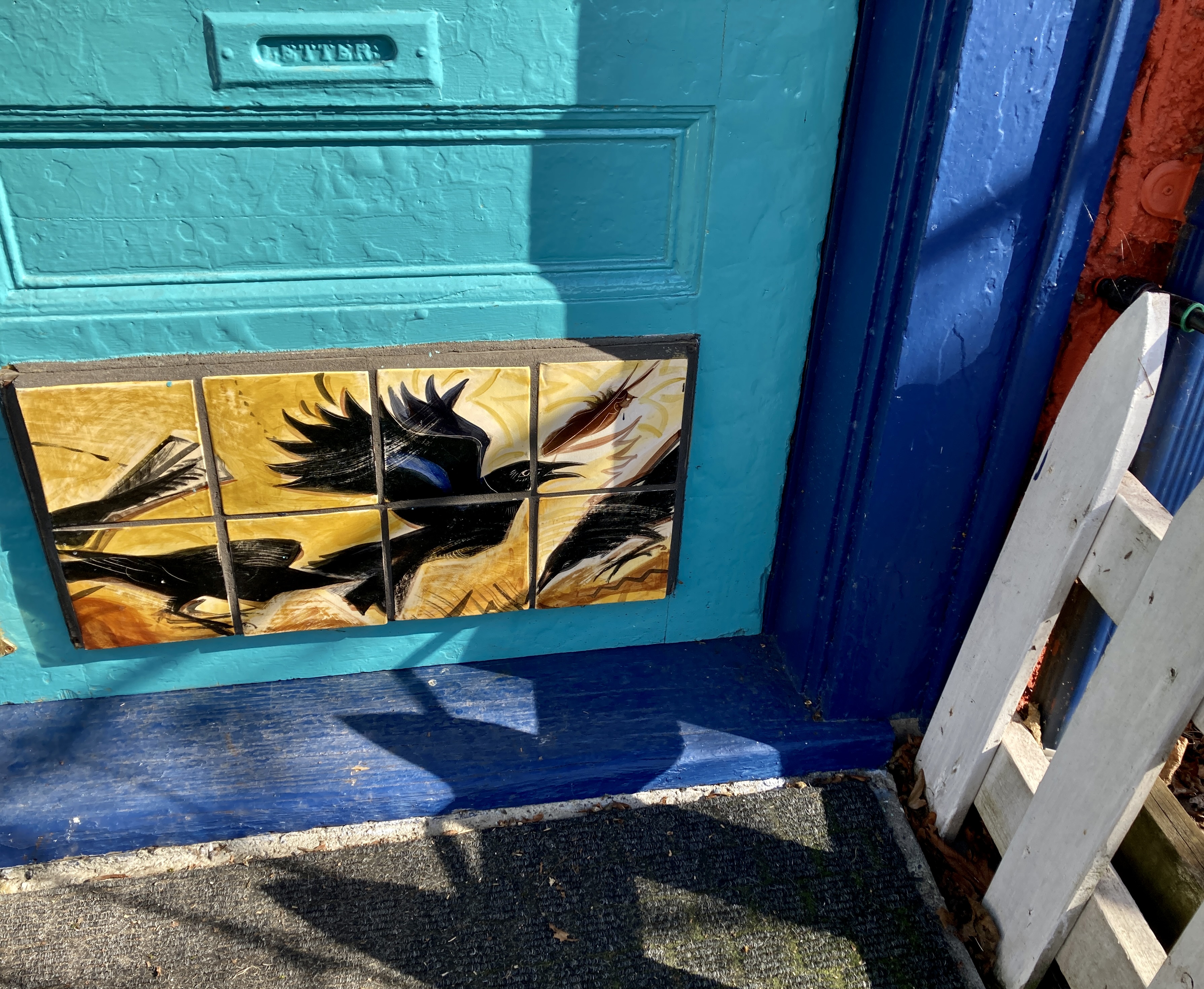 Crow in a convex mirror! I’ve never noticed him before, so already the alley is different.