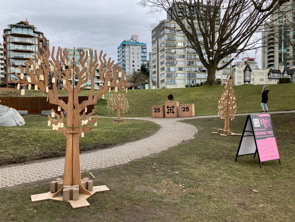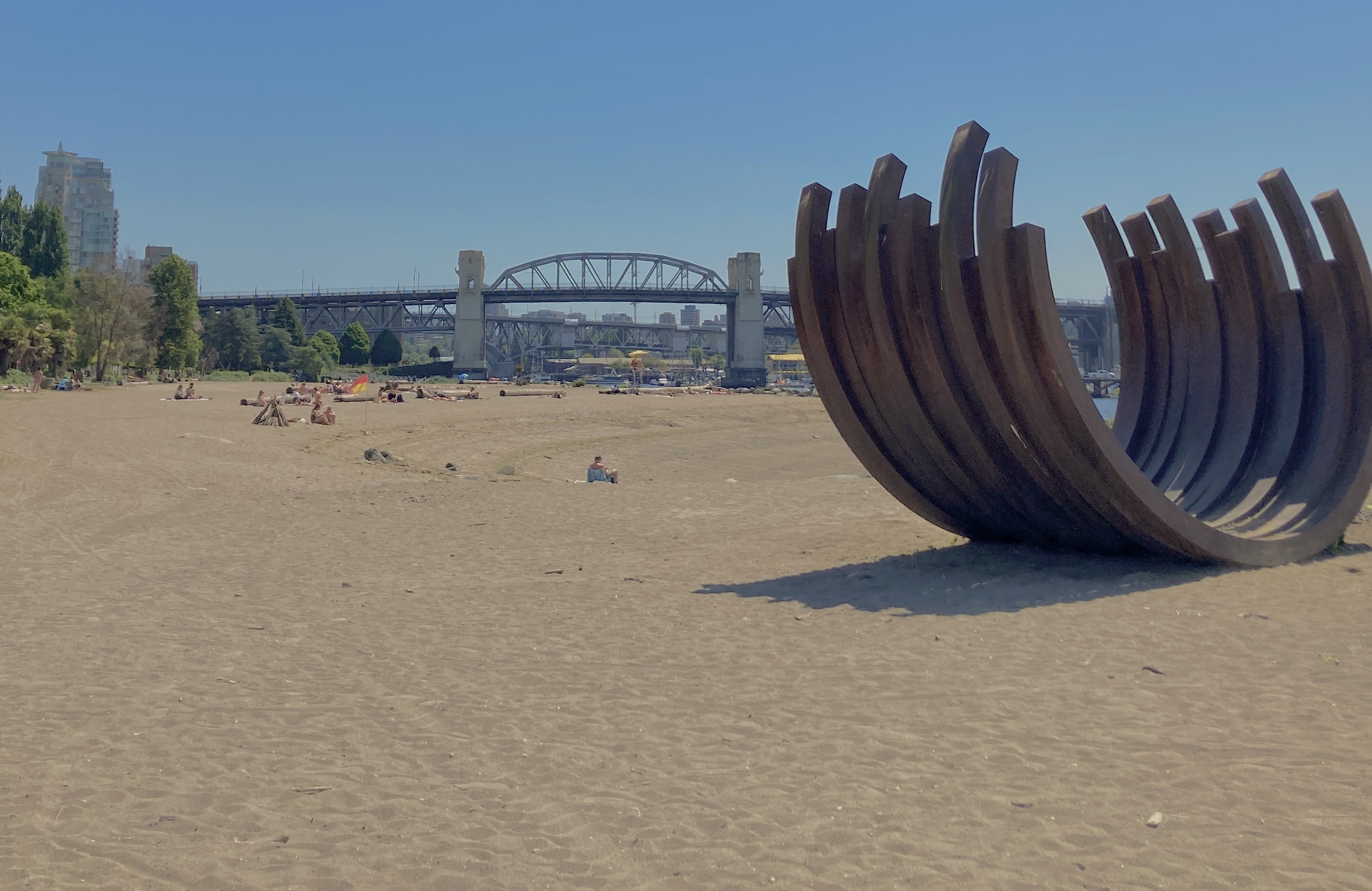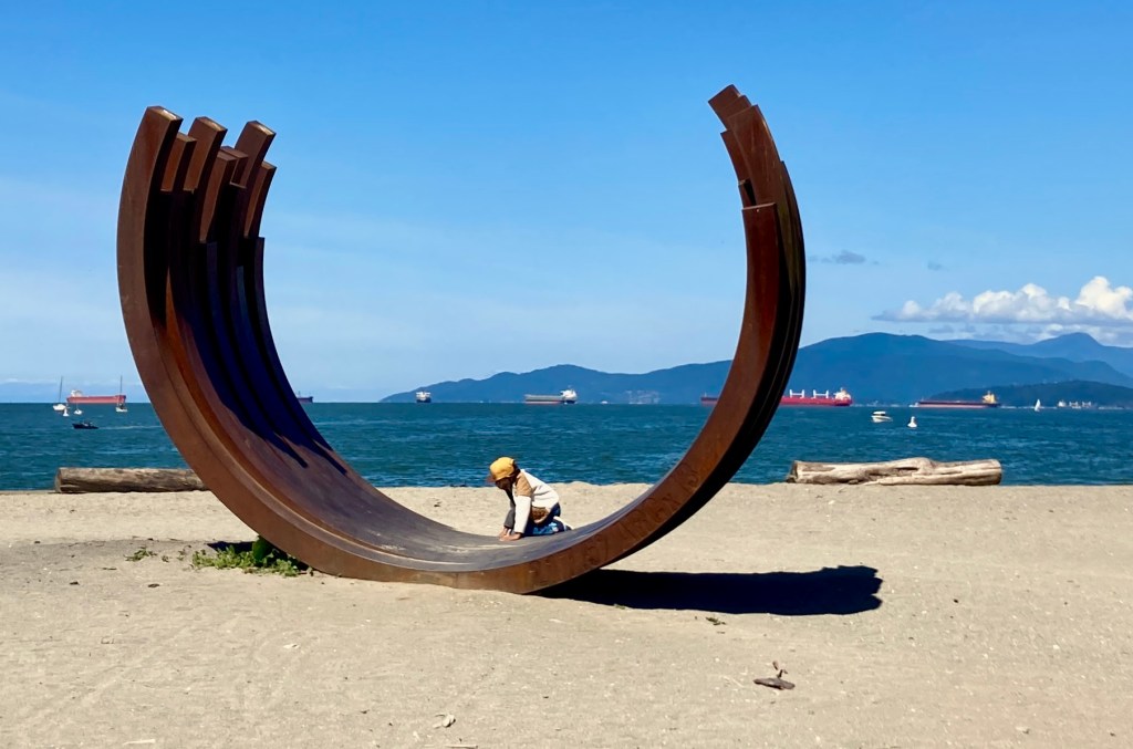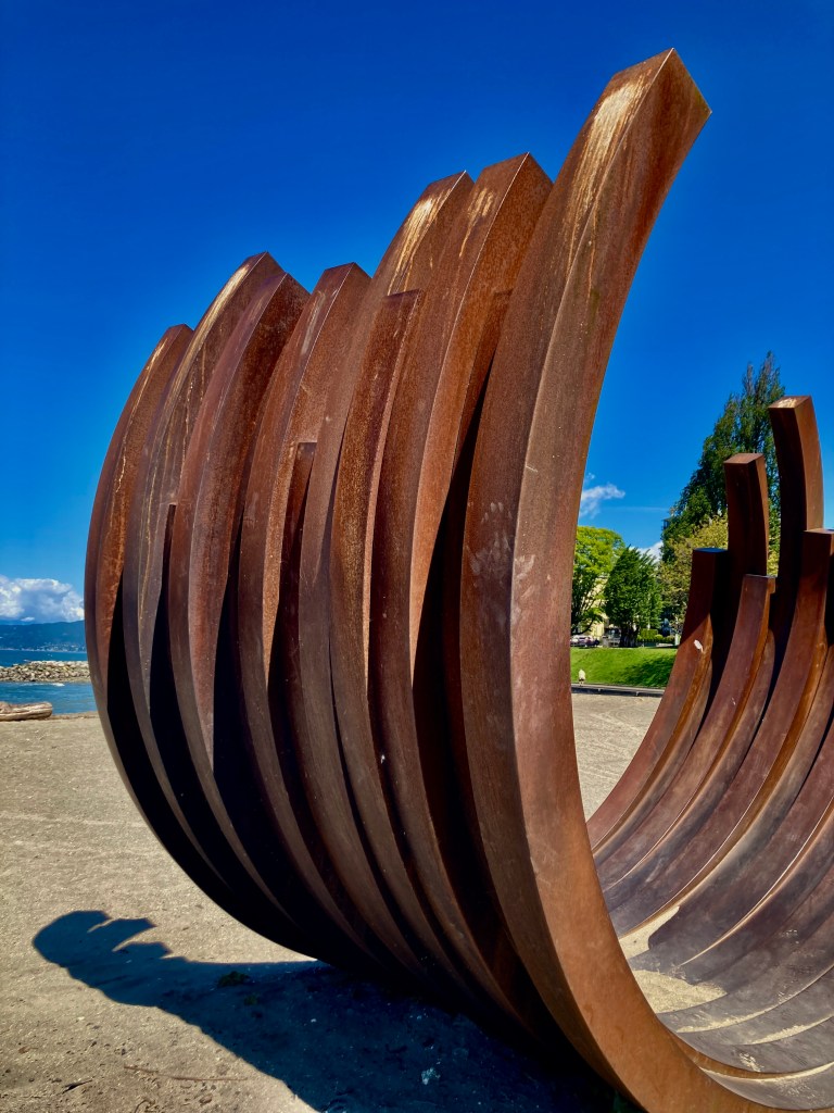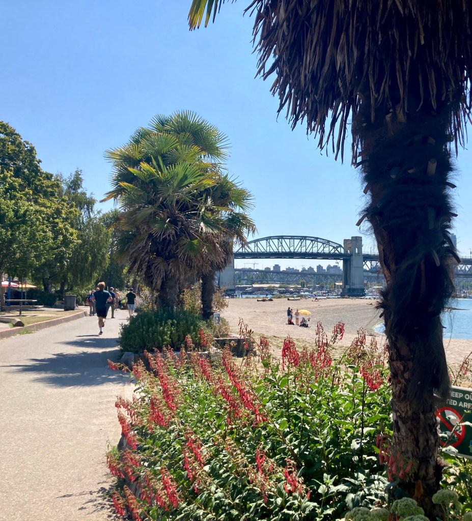 Walk down to The Village ferry dock (south-east end of False Creek, by Olympic Village Square); ferry to David Lam Park dock; walk on west along this portion of Vancouver’s Seawall, on past George Wainborn Park; then up-over the Granville Street bridge; down-around Granville Loop Park… and whatever.