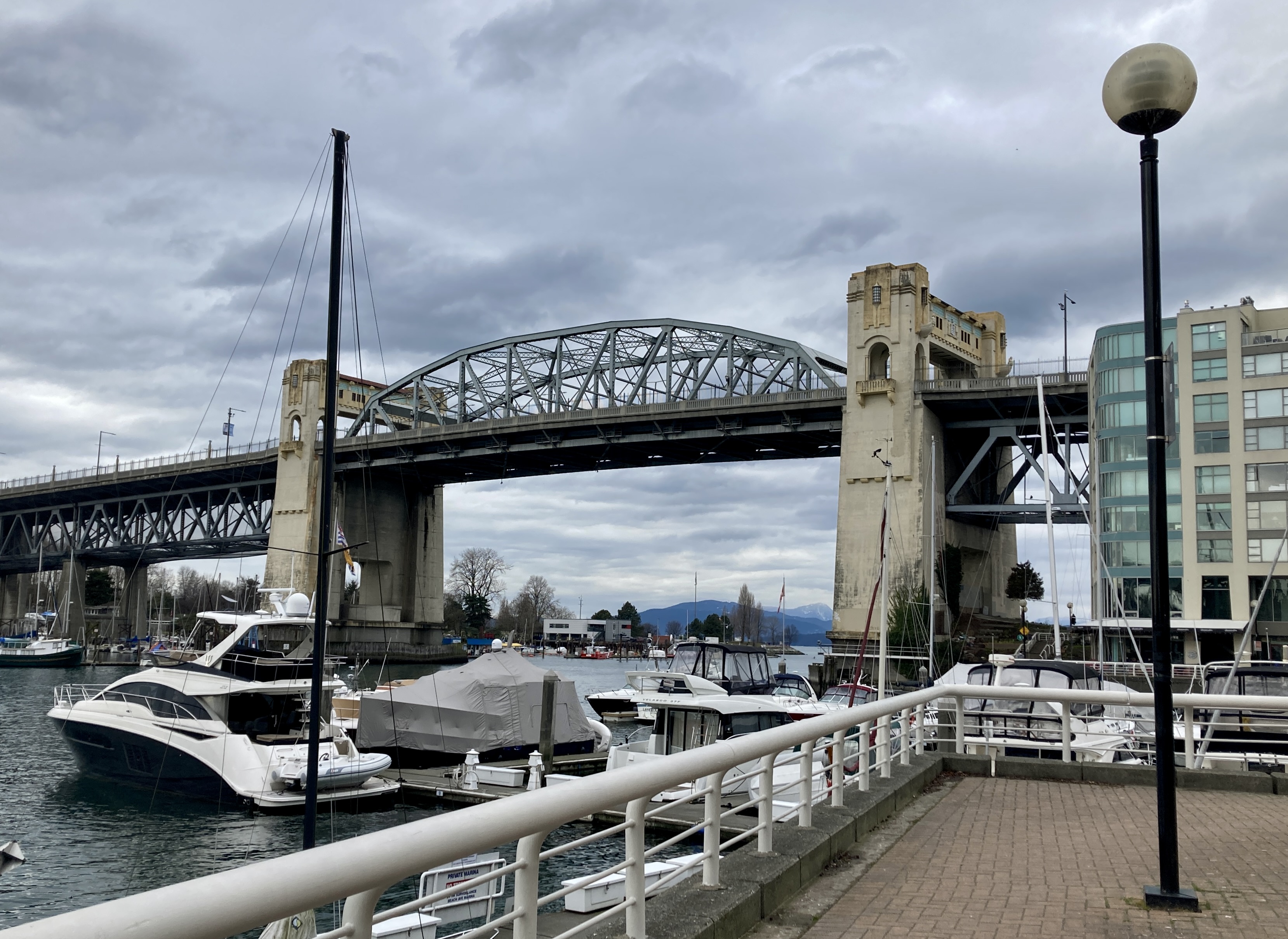 The Seawall, like False Creek, has a mixed-use culture. Pedestrians here; cyclists there. In between David Lam & George Wainborn parks, I also get a good look at the Granville Street bridge, up ahead.