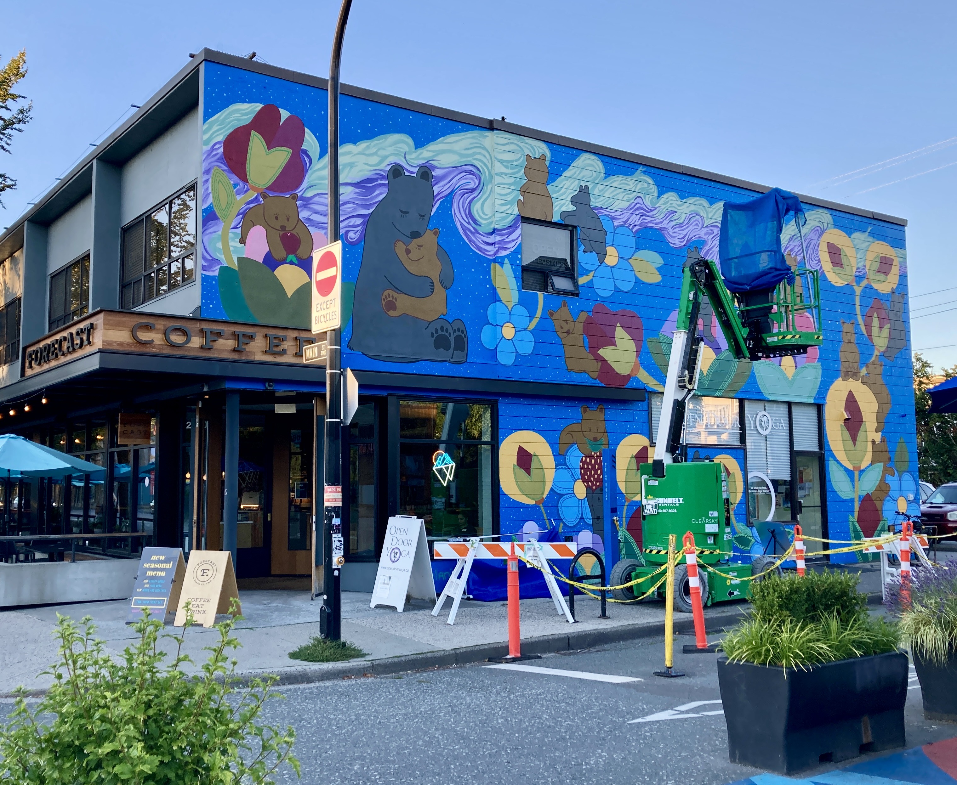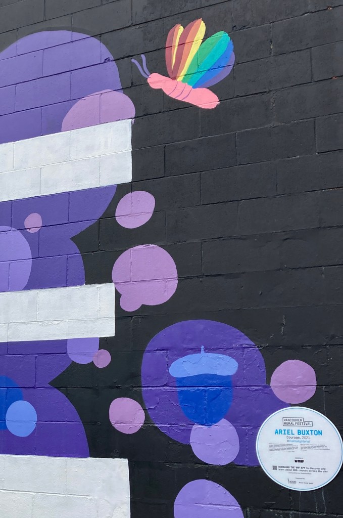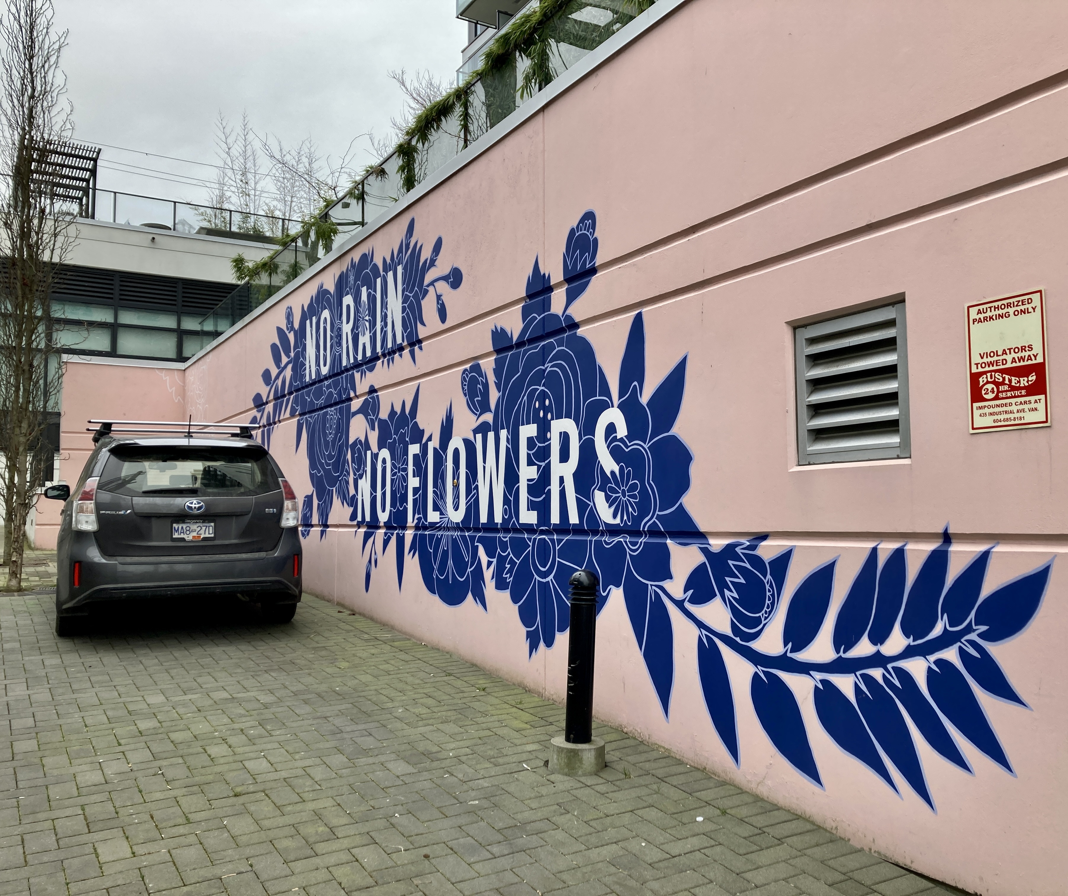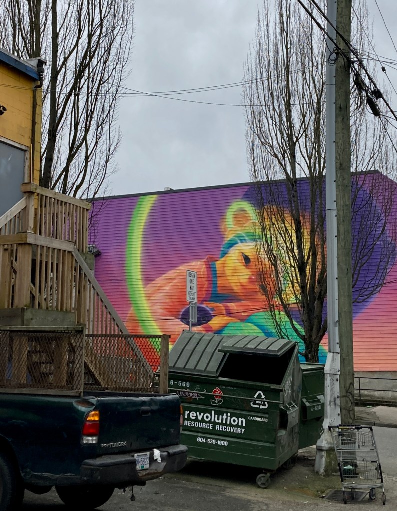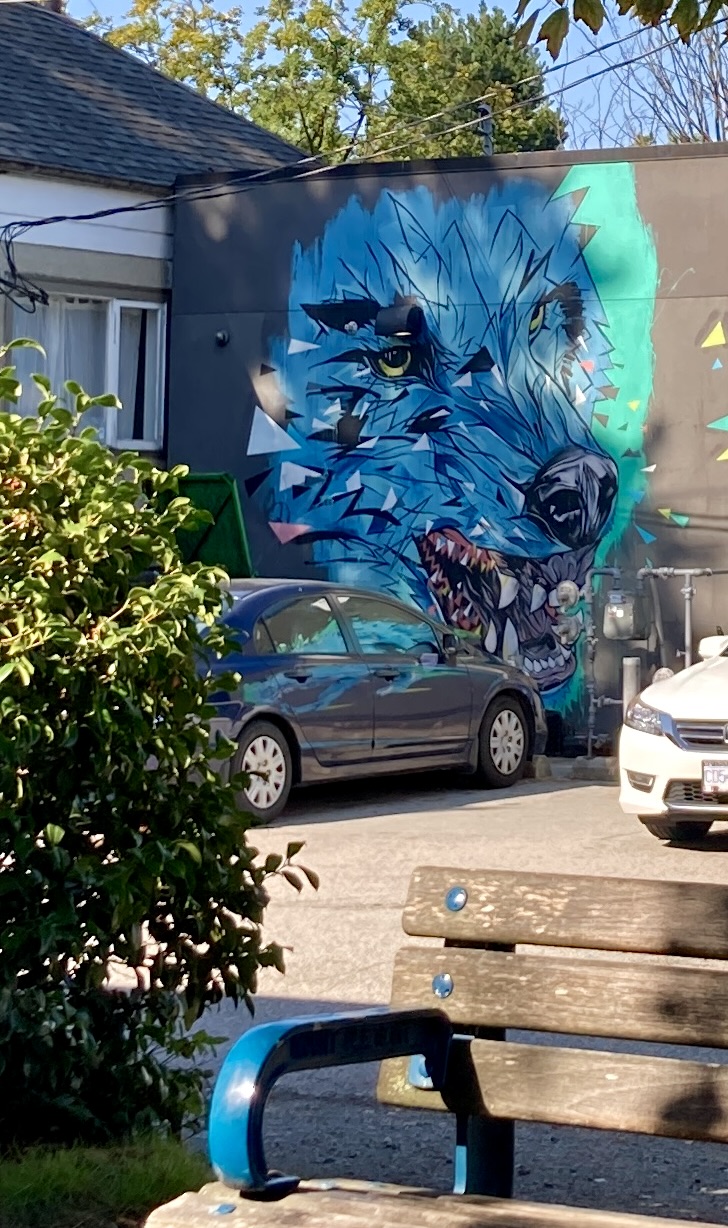 18 August 2025 – I’m just off a False Creek ferry and walking uphill toward home, still full of Flat White and café chatter with a good friend, when I stop to admire another good friend. (Albeit in a different category of friendship: painted, not human.)