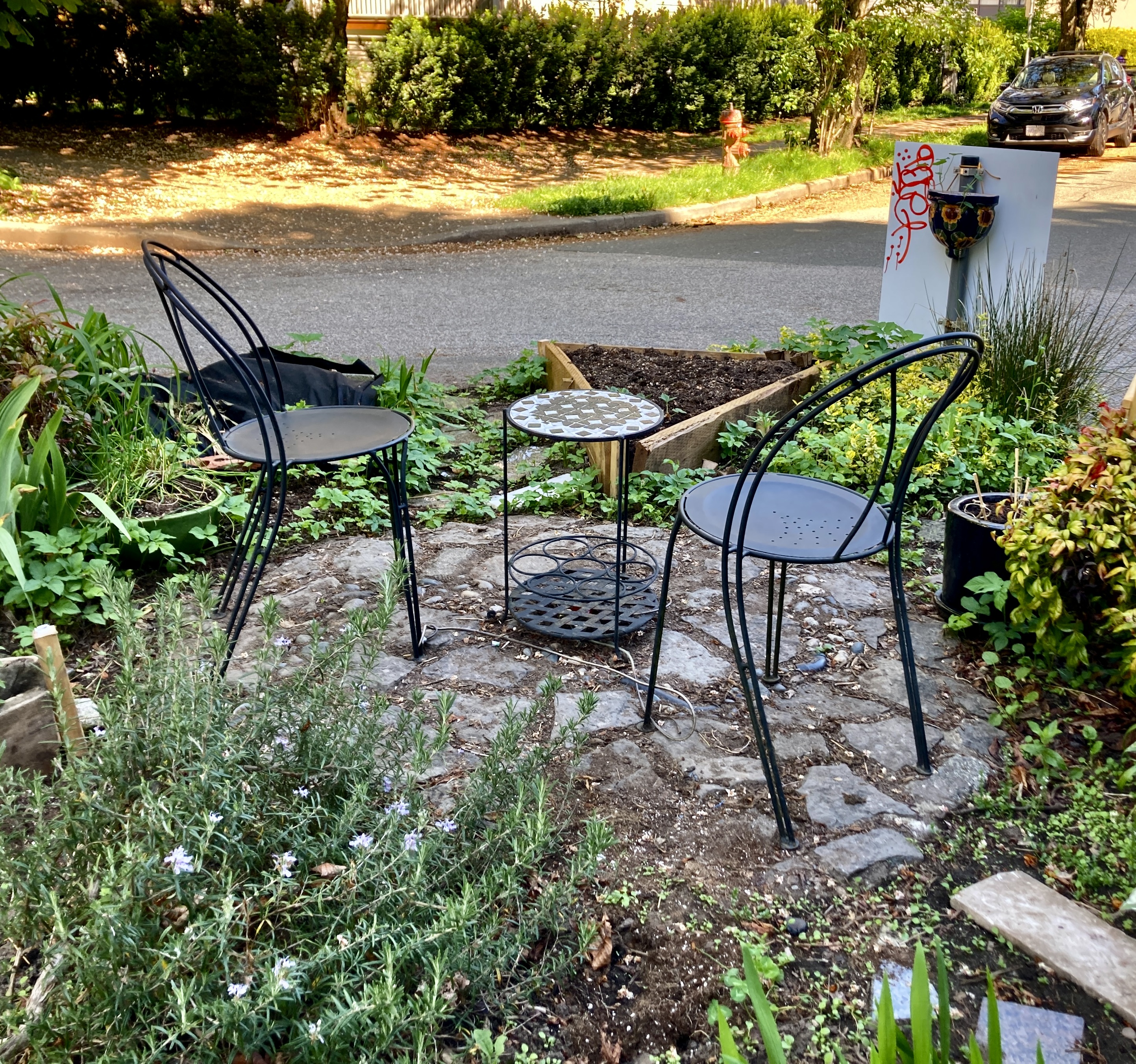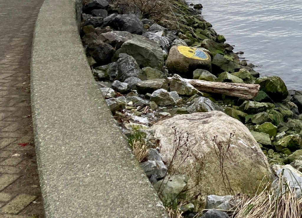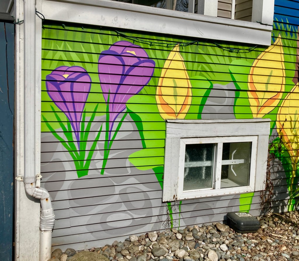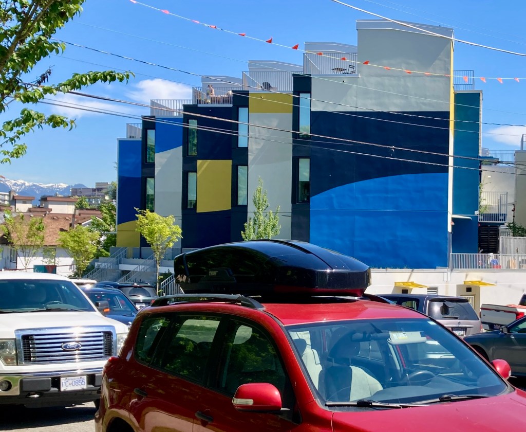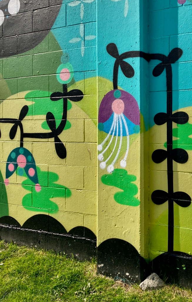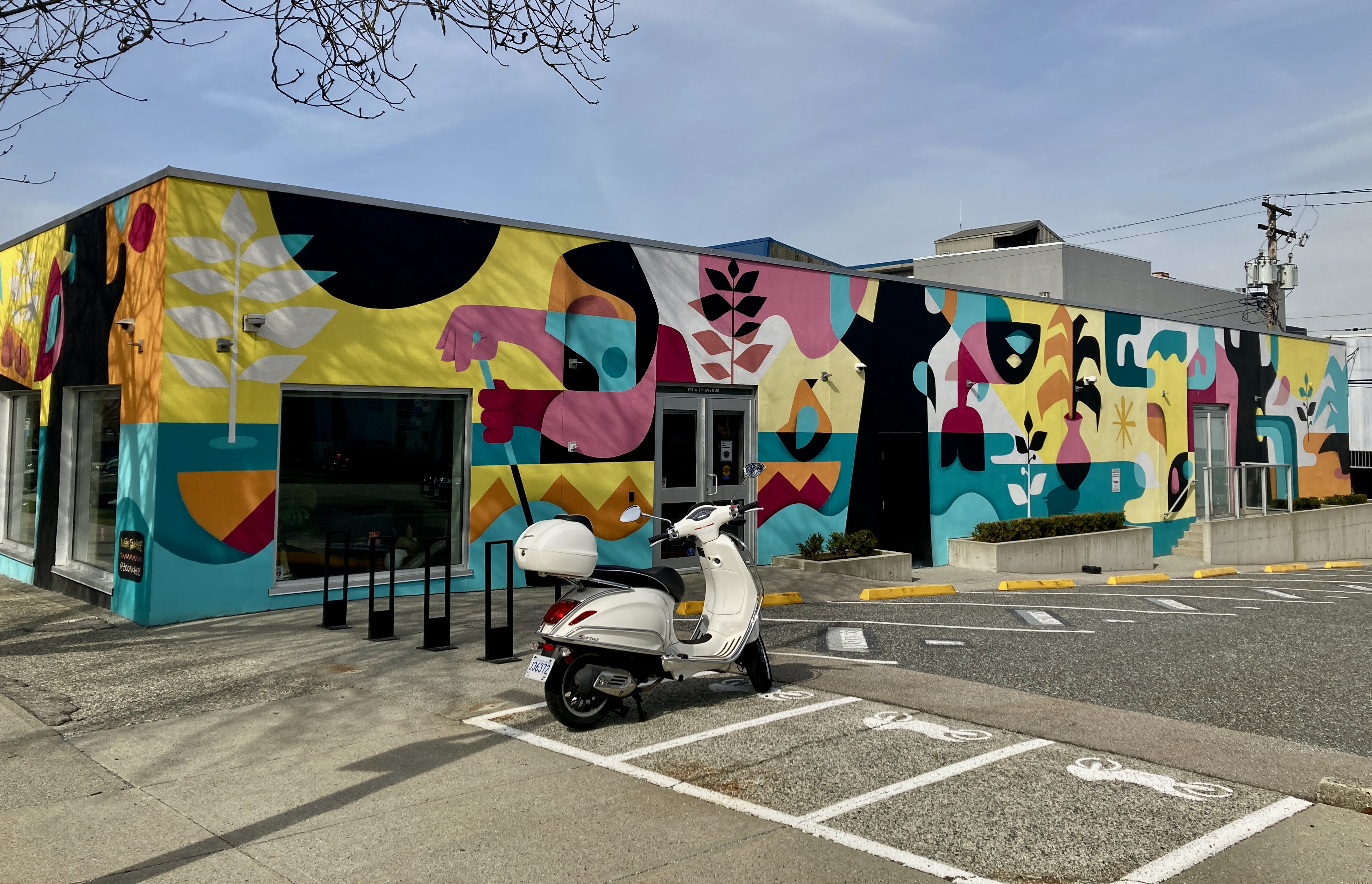 18 August 2025 – I’m just off a False Creek ferry and walking uphill toward home, still full of Flat White and café chatter with a good friend, when I stop to admire another good friend. (Albeit in a different category of friendship: painted, not human.)