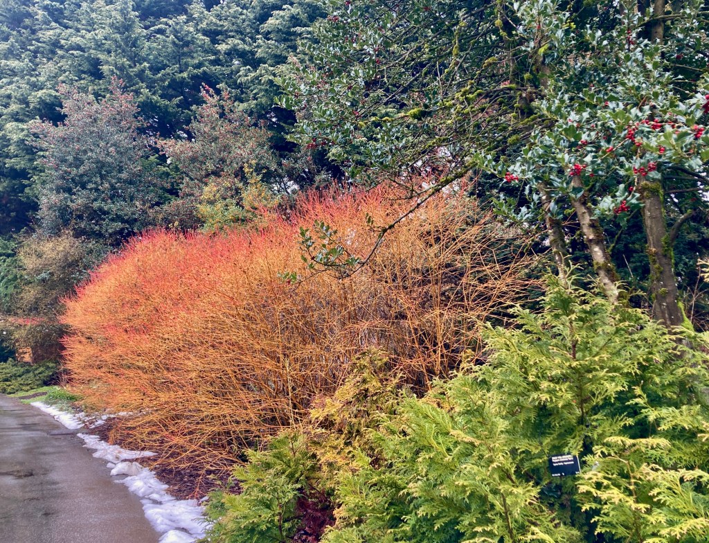 To me, this Van Dusen duo look more contemplative than confident. Pffft, who cares? Confidence is an admirable characteristic, so let’s run with it. Confidence in my outerwear to be as waterproof as it claims, for example… confidence in nature’s transitions each season… confidence in the bones and installations of this Garden to be of interest, whatever the season, whatever the weather.