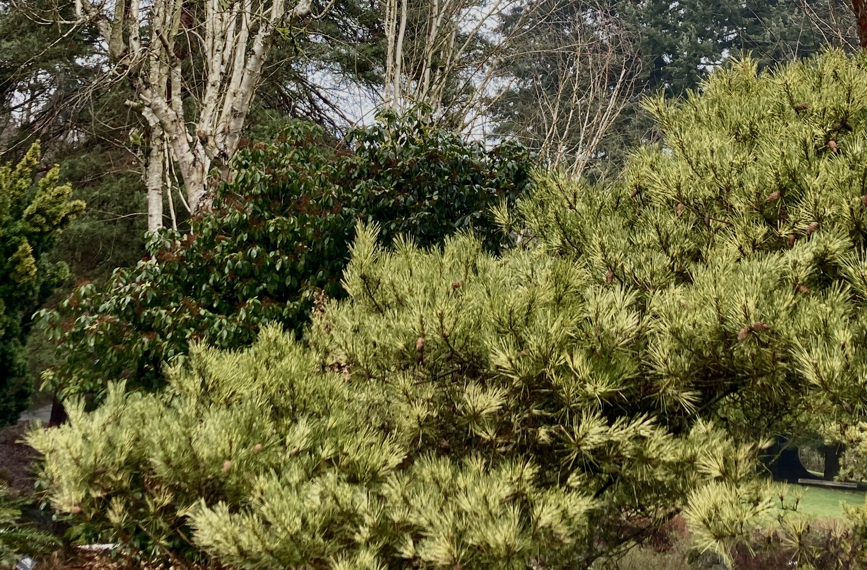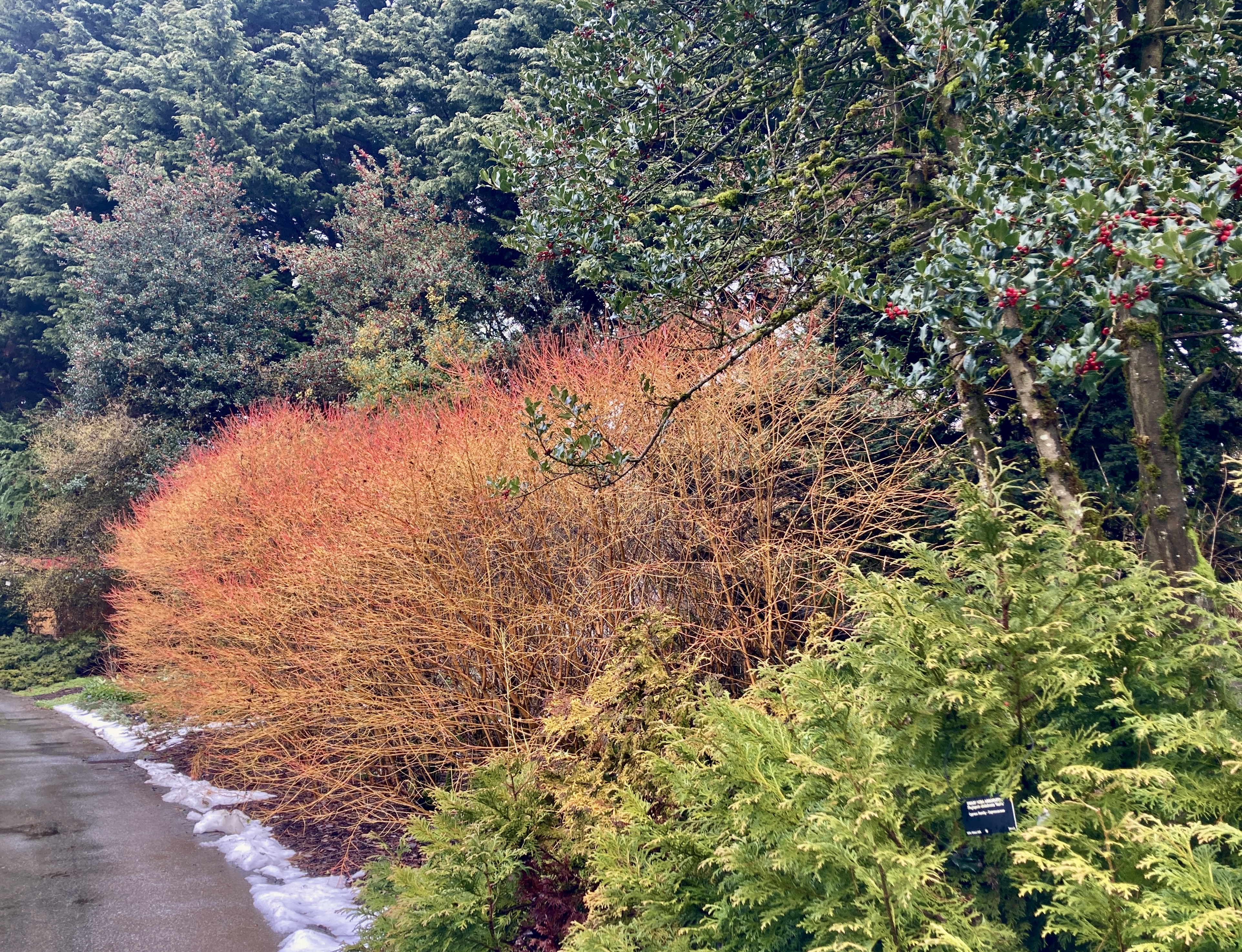 To me, this Van Dusen duo look more contemplative than confident. Pffft, who cares? Confidence is an admirable characteristic, so let’s run with it. Confidence in my outerwear to be as waterproof as it claims, for example… confidence in nature’s transitions each season… confidence in the bones and installations of this Garden to be of interest, whatever the season, whatever the weather.