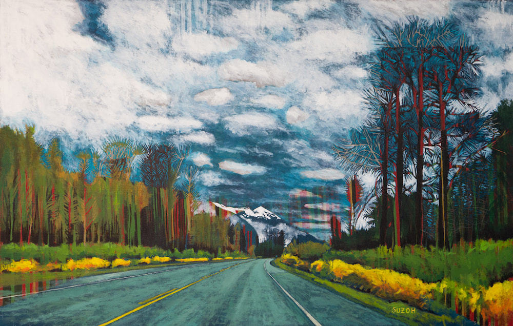 Enough blazing sunshine. I forsake the Seawall to climb uphill to Beach Ave. and the shade offered by its trees. It gives me a distant view of Squamish artist Chrystal Sparrow’s mural on the Sunset Beach sport court, currently being repainted…